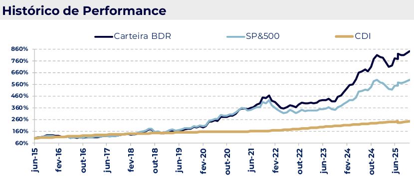 Em outubro, a Carteira Safra BDRs registrou valorização de 3,87%, superando o S&P 500 (3,36%), o CDI (1,22%) e o Ibovespa (2,26%).