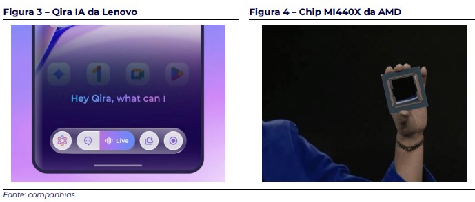 Lenovo (sem cobertura): Em contraste com a Dell, a Lenovo buscou criar um ecossistema proprietário com o lançamento da Qira (figura 3), sua IA onipresente, e novos hardwares como o colar inteligente. A estratégia da companhia parece tentar criar um lock-in em que a IA conhece o usuário através de múltiplos dispositivos.