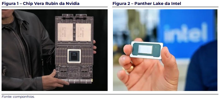 Intel: A Intel apresentou a família Panther Lake (figura 2), baseada no processo de fabricação 18A. A recepção do mercado foi positiva, impulsionada não apenas pelas especificações, mas pela percepção de que a empresa está cumprindo seu roadmap.