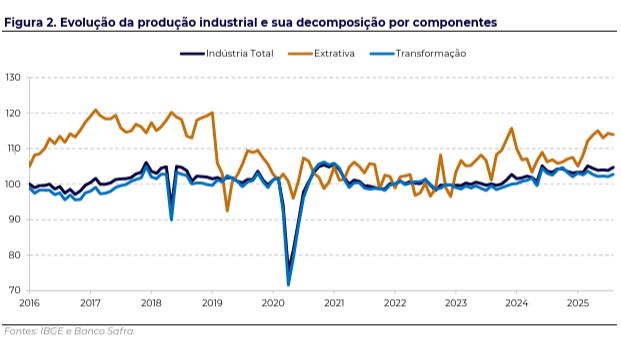 Os indicadores do Safra não apontam para uma expansão relevante do consumo no terceiro trimestre, sugerindo uma demanda interna contida.