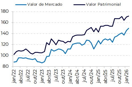 Fundos de tijolo: os especialistas do Safra acreditam que as principais oportunidades estão em lajes corporativas, categoria que carrega maior desconto frente ao patrimonial, mas que no último período foi destaque positiva de performance; do outro lado, o Safra destaca logística como a categoria melhor precificada.