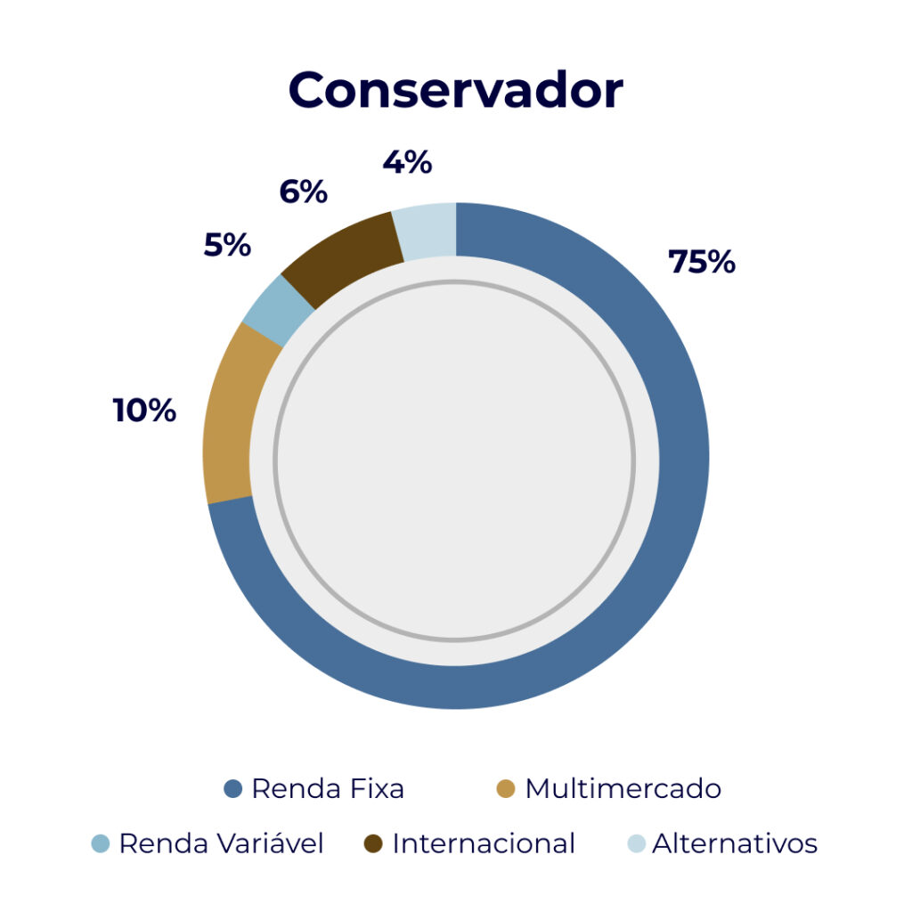 Investidores conservadores demonstram baixa aceitação às oscilações nas suas carteiras. No entanto, não quer dizer que não aceitem oscilações. Neste sentido, o Safra entende que existe espaço para a diversificação além da Renda Fixa e Fundos Multimercado, adicionando uma parcela de investimentos em Renda Variável Local e ativos internacionais.