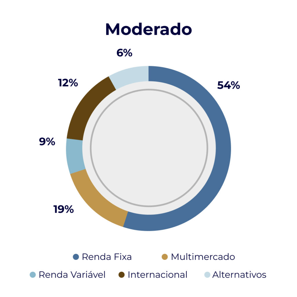 Investidores moderados aceitam oscilações em seus portfólios em prol do maior potencial de retorno. Fundos Multimercados podem ser predominantes na alocação para potencializar a expectativa de retorno esperado. Pensamento de longo prazo é importante para este investidor.