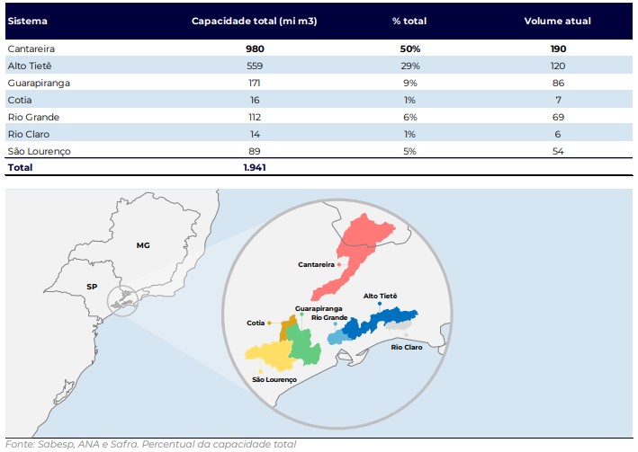 Consequentemente, o Safra recisou o modelo para o Cantareira e, embora a afluência ainda possa melhorar em fevereiro e março (historicamente 25% da afluência anual), o banco vê um cenário desafiador que pode exigir medidas adicionais para melhorar o abastecimento de água até o fim de 2026.